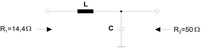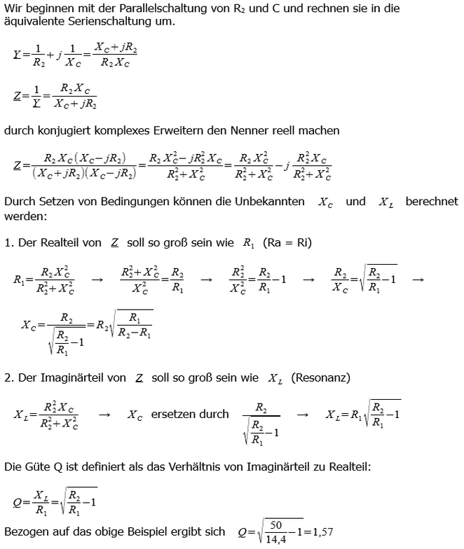 Der eben gefundene Wert soll nun mit einer Schhaltung aus C und L an 50 Ω angespasst werden.