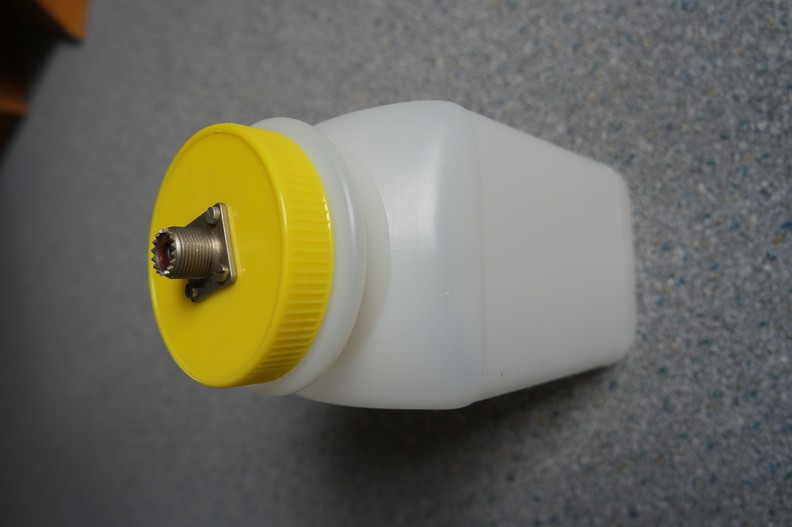 Die benötigten wenigen Teile sollten sich in jedem Shack bzw. Haushalt finden. Es sind ein Plastikbehälter mit Schraubdeckel, eine Koaxbuchse der bevorzugten oder vorhandenen Norm und zwei Stücke steifen Draht.