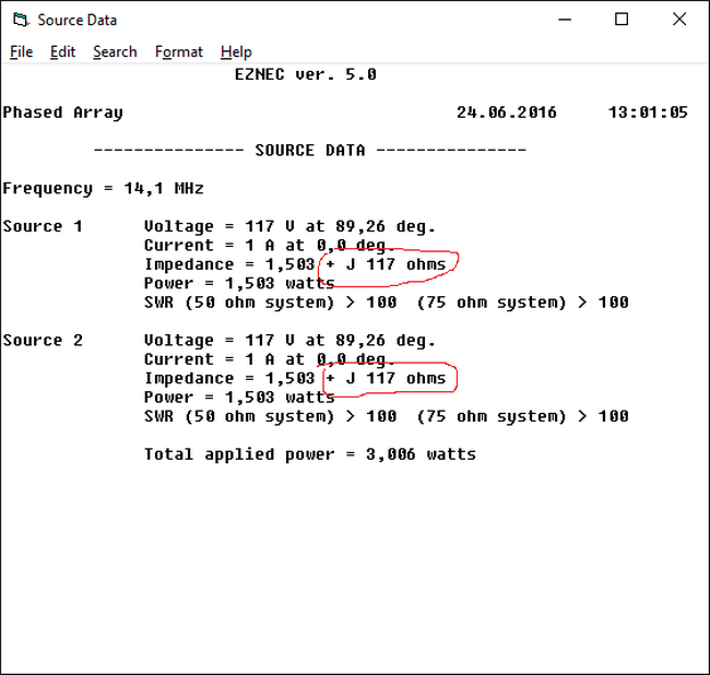 Der Blindanteil ist also in beiden Quellimpedanzen +117 Ohm. Um diesen Blindanteil zu kompensieren, wird den beiden Speisepunkten je eine 'Load' von -